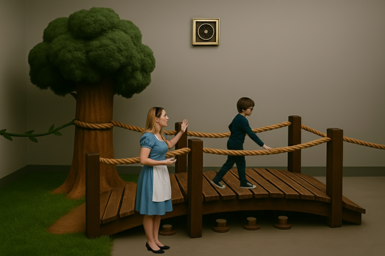Sensing Wonderland is an immersive storytelling experience for blind and visually impaired children that reimagines Alice in Wonderland through touch, sound, scent, taste, and movement instead of sight. Designed as an escape‑room style environment, children move through tactile spaces where audio cues, scents, and interactive objects guide them through the story. Key moments like shrinking and growing are created through changes in space, texture, and sound, transforming a traditionally visual narrative into a multisensory adventure.